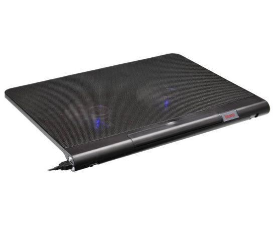 Подставка для ноутбука до 17,3" Buro BU-LCP170-B214 Black, 2 вентилятора: 140 мм, поток: 76.61 CFM, уровень шума: 23 dB(A), 2 х USB-разъёма, LED подсветка, регулировка наклона, материал: металл, пластик
