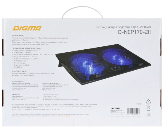Подставка для ноутбука Digma D-NCP170-2H 17"390x270x25мм черный