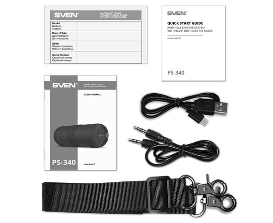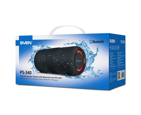 Портативная акустика SVEN PS-340 черный (24 Вт, IPx6, TWS, Bluetooth, FM, USB, 3600мА*ч)