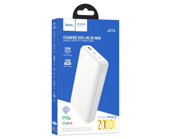 Портативный аккумулятор HOCO J87A Tacker, 3A, 20000 мА⋅ч, белый