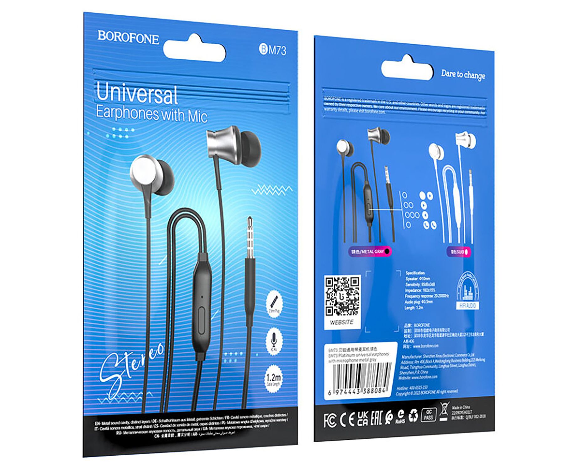 Проводные наушники с микрофоном внутриканальные Borofone BM73 Jack 3,5 (metal gray) (217922)