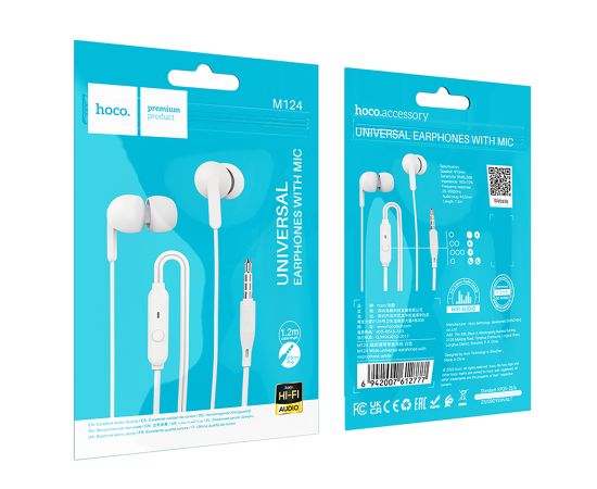 Проводные наушники с микрофоном внутриканальные Hoco M124 Wide Jack 3,5 (white) (225407)