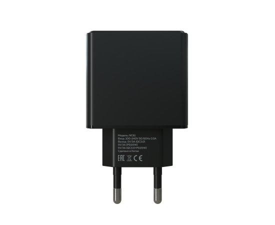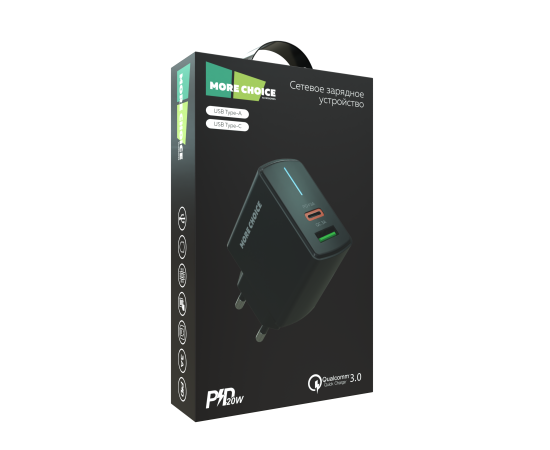 PURE СЗУ 1USB+1USB-C 3.0A PD 20W+QC3.0 быстрая зарядка More choice NC61 (Black)