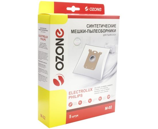 подходят: AEG, PHILIPS, TORNADO, VOLTA, ZANUSSI, бренд: OZONE, арт. M-02, тип оригинального мешка: S-Bag.
