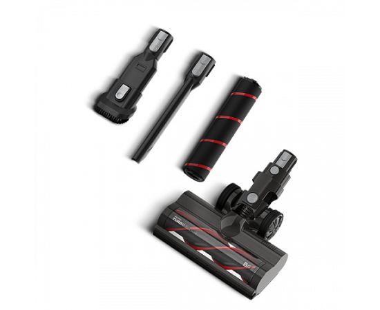 Беспроводной пылесос, контейнер для сбора пыли, трубка, щетка для мебели, узкая насадка, электрощетка, сменный ролик электрощетки, настенное крепление, зарядное устройство, съемный аккумулятор, дополнительный фильтр HEPA H11, руководство по эксплуатации,