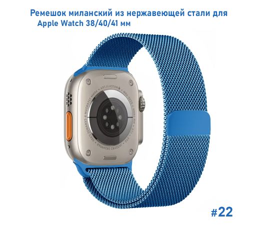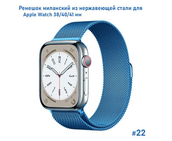 Ремешок миланcкий из нержавеющей стали Great Case Milanese Loop для Apple Watch 38/40/41 мм, 235мм, на магните, лазурный (22)