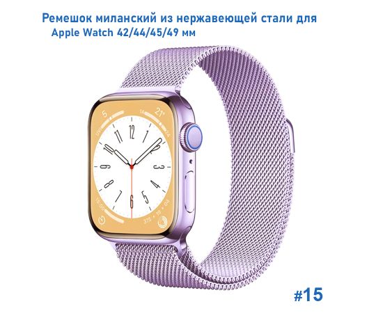 Ремешок миланcкий из нержавеющей стали Great Case Milanese Loop для Apple Watch 42/44/45/49 мм, 255мм, на магните, фиалковый (15)