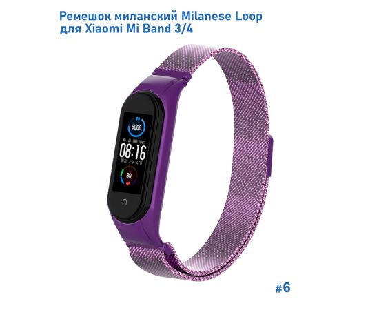 Ремешок миланcкий из нержавеющей стали Great Case Milanese Loop для Xiaomi Mi Band 3/4, 260мм, на магните, фиолетовый (6)