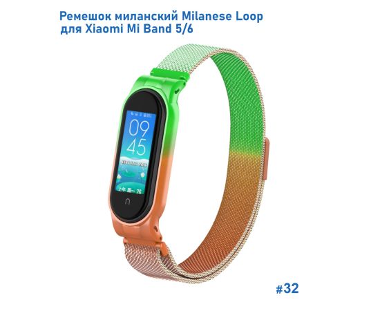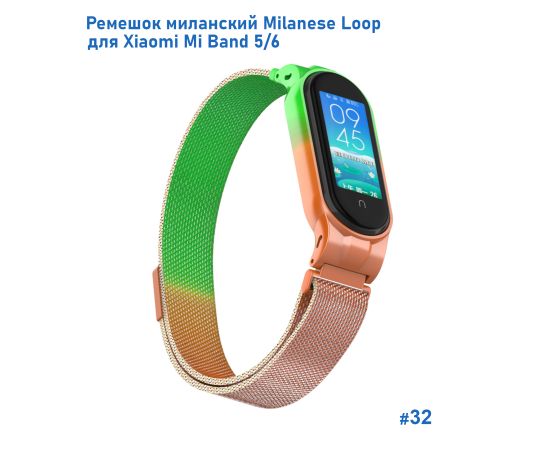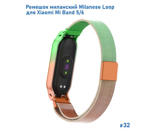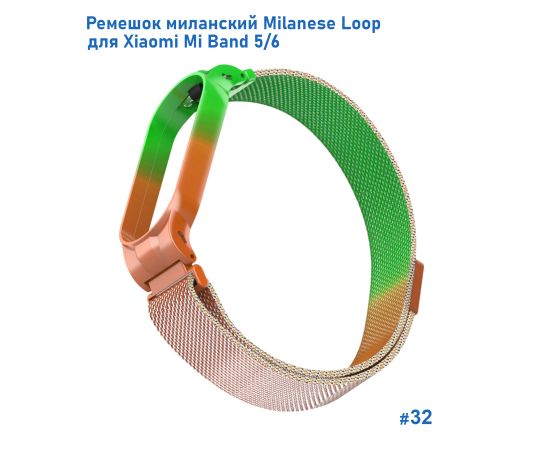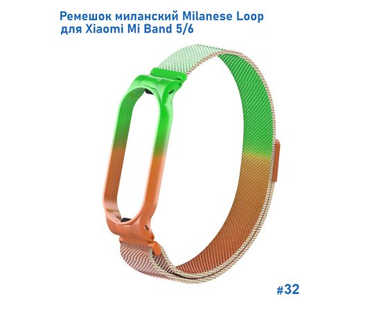 Ремешок миланcкий из нержавеющей стали Great Case Milanese Loop для Xiaomi Mi Band 5/6, 260мм, на магните, зеленый+оранжевый (32)
