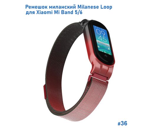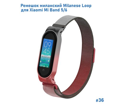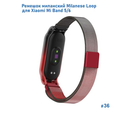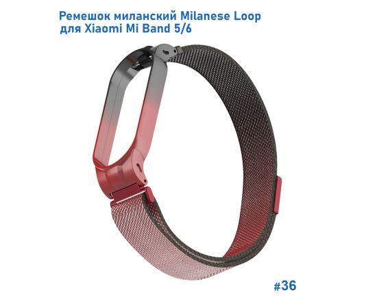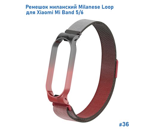 Ремешок миланcкий из нержавеющей стали Great Case Milanese Loop для Xiaomi Mi Band 5/6, 260мм, на магните, красный+черный (36)