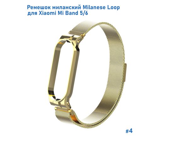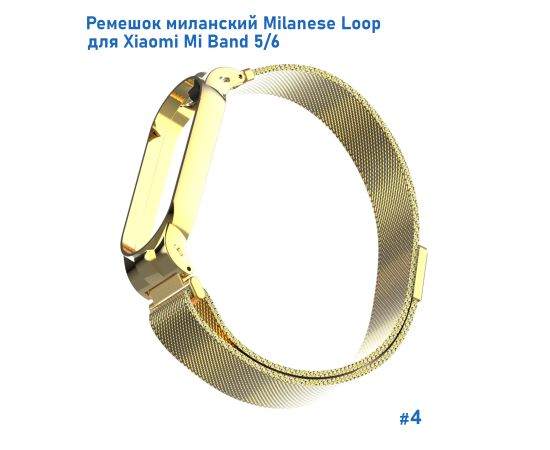 Ремешок миланcкий из нержавеющей стали Great Case Milanese Loop для Xiaomi Mi Band 5/6, 260мм, на магните, желтое золото (4)