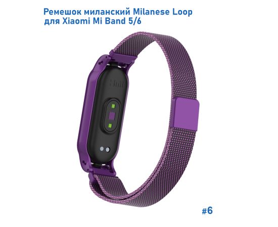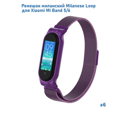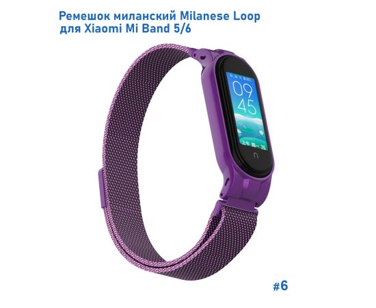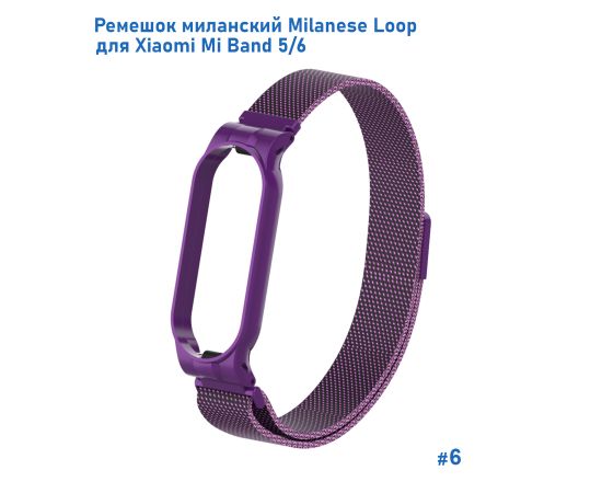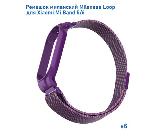 Ремешок миланcкий из нержавеющей стали Great Case Milanese Loop для Xiaomi Mi Band 5/6, 260мм, на магните, фиолетовый (6)