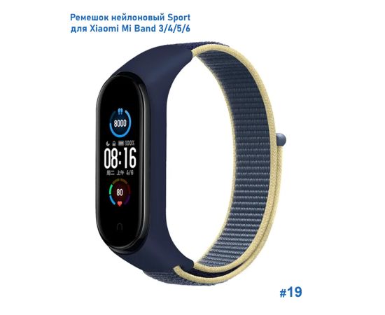 Ремешок нейлоновый Great Case Sport для Xiaomi Mi Band 3/4/5/6/7, 260мм, на липучке, синий+желтый (19)
