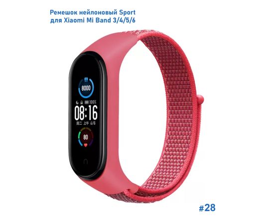 Ремешок нейлоновый Great Case Sport для Xiaomi Mi Band 3/4/5/6/7, 260мм, на липучке, розовый (28)