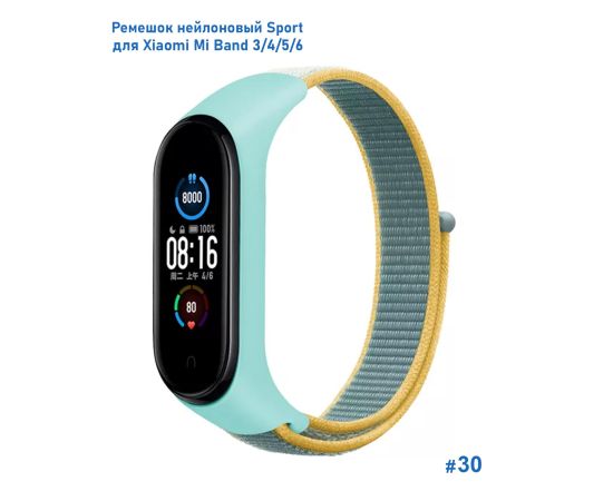 Ремешок нейлоновый Great Case Sport для Xiaomi Mi Band 3/4/5/6/7, 260мм, на липучке, голубой+желтый (30)
