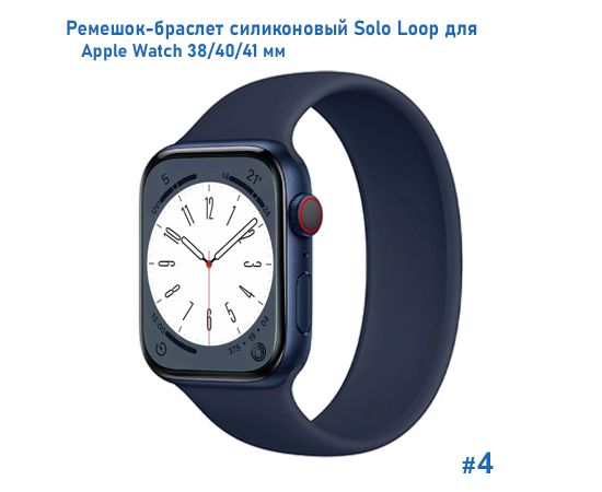 Ремешок-браслет силиконовый Great Case Solo Loop для Apple Watch 38/40/41 мм, S(128мм), темно-синий (4)