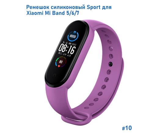 Ремешок силиконовый Great Case Sport для Xiaomi Mi Band 5/6/7, 250мм, на кнопке, сиреневый (10)