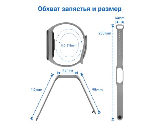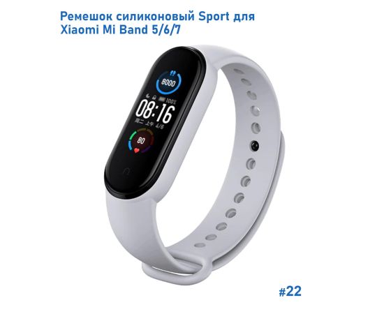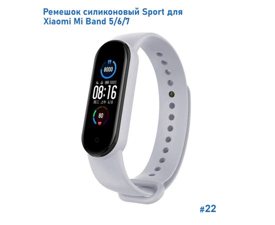 Ремешок силиконовый Great Case Sport для Xiaomi Mi Band 5/6/7, 250мм, на кнопке, серый (22)