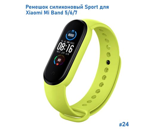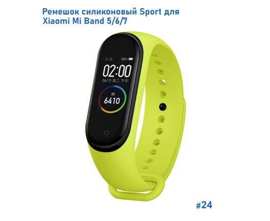 Ремешок силиконовый Great Case Sport для Xiaomi Mi Band 5/6/7, 250мм, на кнопке, лайм (24)