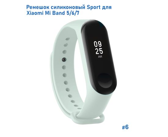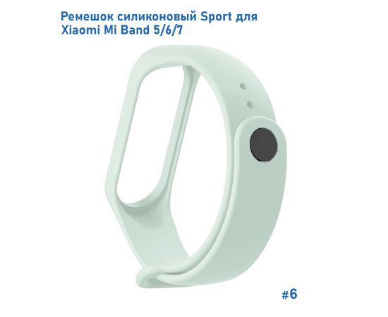 Ремешок силиконовый Great Case Sport для Xiaomi Mi Band 5/6/7, 250мм, на кнопке, светло-бирюзовый (6)