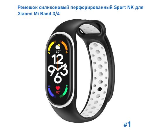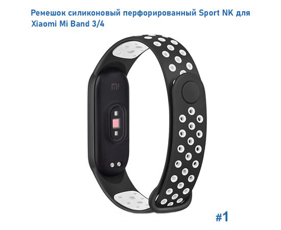 Ремешок силиконовый перфорированный Great Case Sport NK для Xiaomi Mi Band 3/4, 250мм, на кнопке, черный+белый (1)
