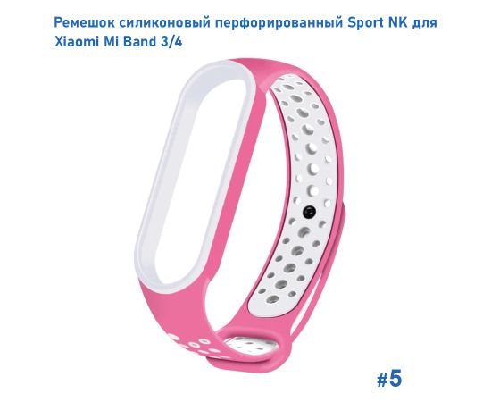 Ремешок силиконовый перфорированный Great Case Sport NK для Xiaomi Mi Band 3/4, 250мм, на кнопке, розовый+белый (5)