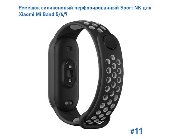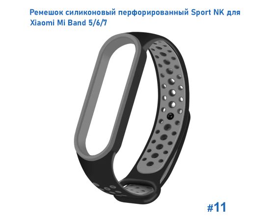 Ремешок силиконовый перфорированный Great Case Sport NK для Xiaomi Mi Band 5/6/7, 250мм, на кнопке, черный+серый (11)