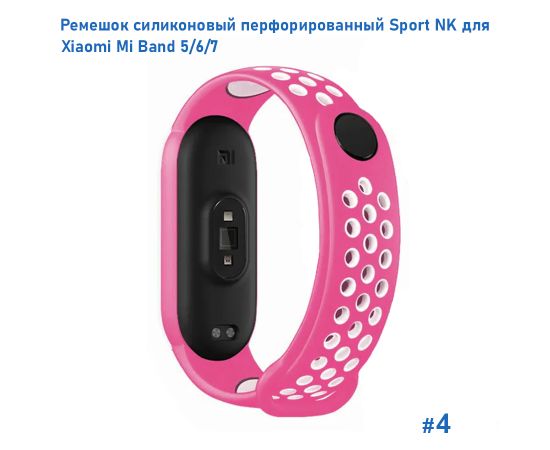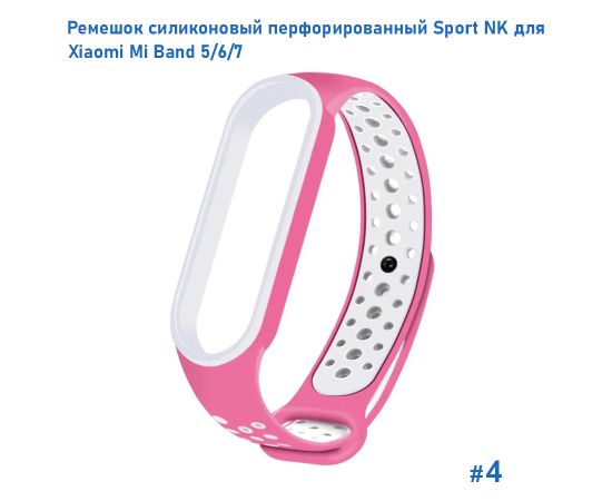 Ремешок силиконовый перфорированный Great Case Sport NK для Xiaomi Mi Band 5/6/7, 250мм, на кнопке, розовый+белый (4)