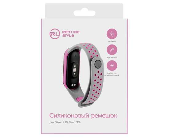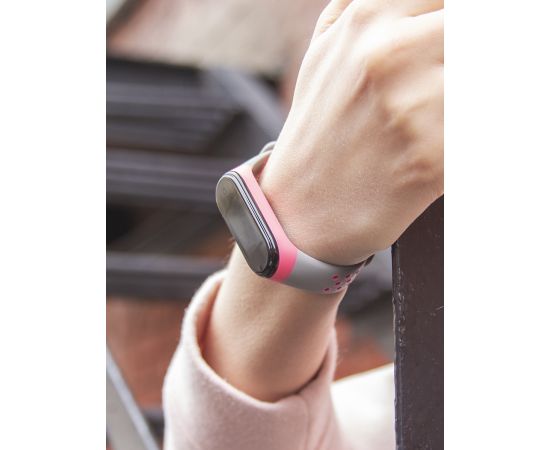 Ремешок двухцветный для фитнес-браслета Xiaomi Mi Band 4/ Mi Band 3, серый с розовым