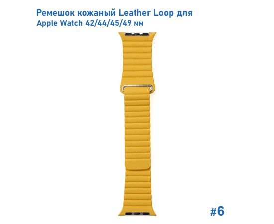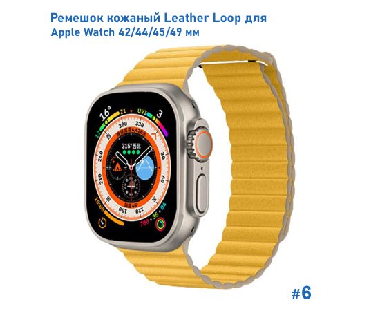 Ремешок кожаный Great Case Leather Loop для Apple Watch 42/44/45/49 мм, 225мм, на магните, желтый (6)