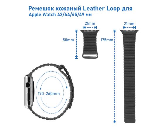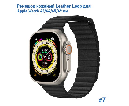 Ремешок кожаный Great Case Leather Loop для Apple Watch 42/44/45/49 мм, 225мм, на магните, черный (7)