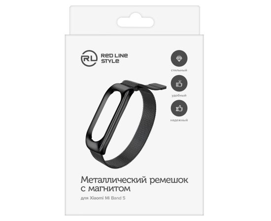 Ремешок металлический с магнитом для фитнес-браслета Xiaomi Mi Band 5/ Mi Smart Band 6, черный
