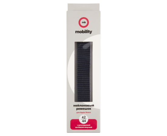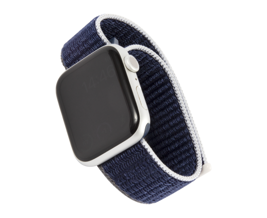 Ремешок нейлоновый MB для Apple watch – 42-44 mm (S3/S4/S5 SE/S6), темно-синий с серо-голубым краем