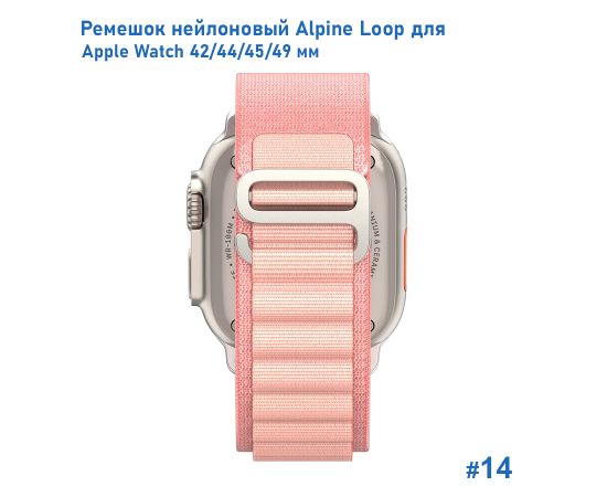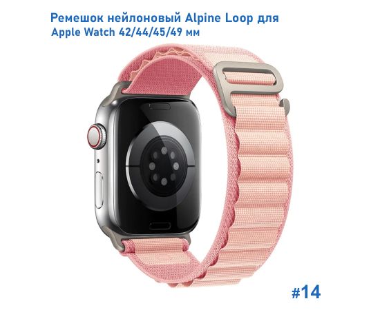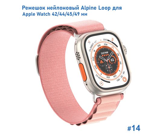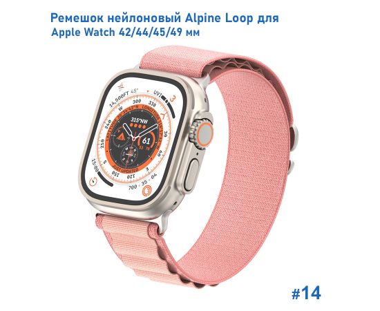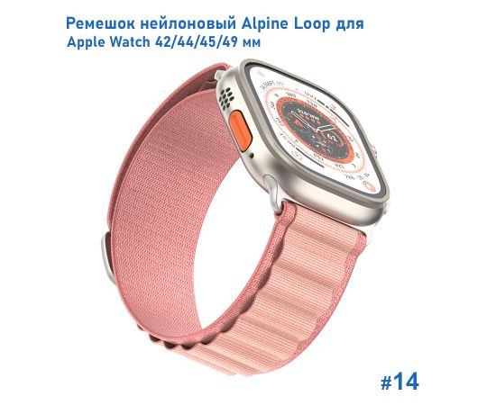 Ремешок нейлоновый Great Case Alpine Loop для Apple Watch 42/44/45/49 мм, 235мм, на застежка, розовый (14)
