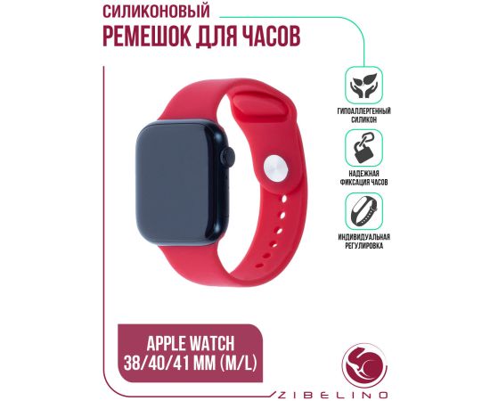 Ремешок силиконовый для смарт часов Apple Watch 38мм, 40мм, 41мм (размер M/L) малиновый (Эпл Вотч 38 мм 40 мм 41мм)