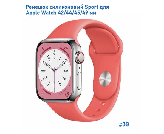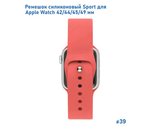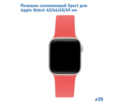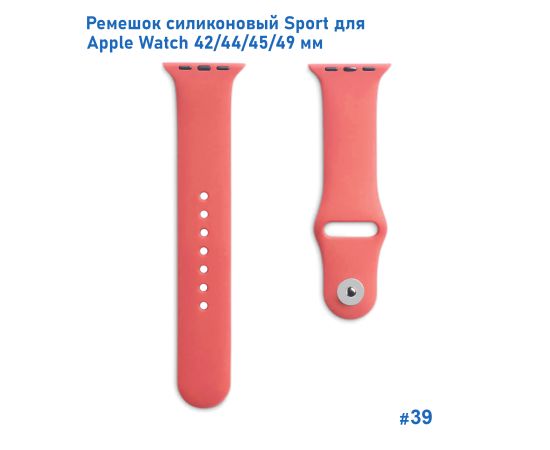 Ремешок силиконовый Great Case Sport для Apple Watch 42/44/45/49 мм, 235мм, на кнопке, розово-красный (39)