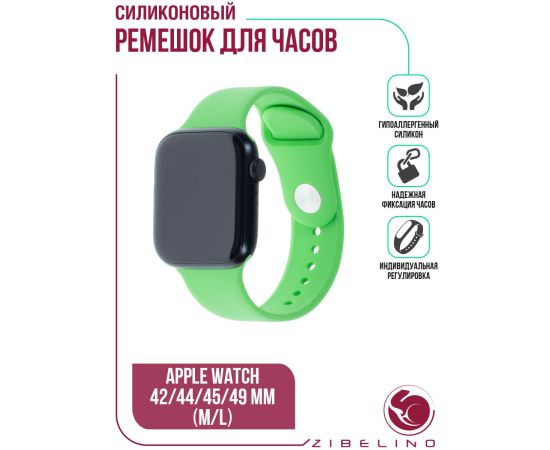 Ремешок силиконовый для смарт часов Apple Watch 42мм, 44мм, 45мм, 49мм (размер M/L) зеленый (Эпл Вотч 42мм 44мм 45мм 49мм)