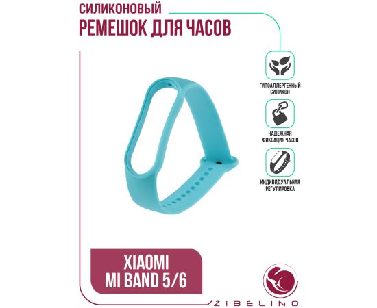 Ремешок для смарт-часов Xiaomii Mi Band 5/6/7 для смарт часов силиконовый, голубой (Ксиоми Ми Бенд 5, Ксиоми Ми Бенд 6)