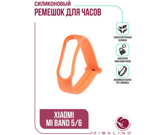 Ремешок для смарт-часов Xiaomii Mi Band 5/6/7 для смарт часов силиконовый, оранжевый (Ксиоми Ми Бенд 5, Ксиоми Ми Бенд 6)