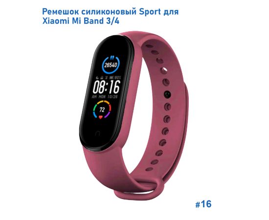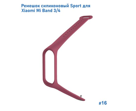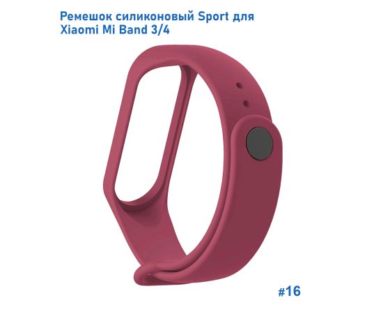 Ремешок силиконовый Great Case Sport для Xiaomi Mi Band 3/4, 250мм, на кнопке, бордовый (16)