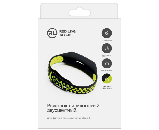 Ремешок силиконовый двухцветный для фитнес-трекера Honor Band 5, черный с зеленым