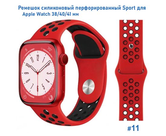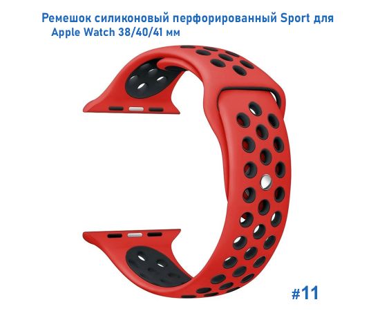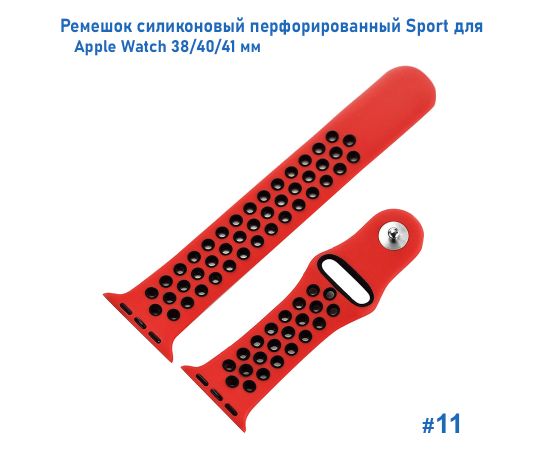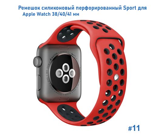 Ремешок силиконовый перфорированный Great Case Sport NK для Apple Watch 38/40/41 мм, 225мм, на кнопке, красный+черный (11)