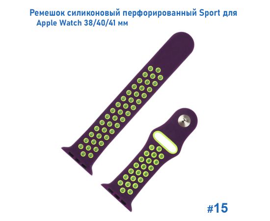 Ремешок силиконовый перфорированный Great Case Sport NK для Apple Watch 38/40/41 мм, 225мм, на кнопке, фиолетовый+зеленый (15)