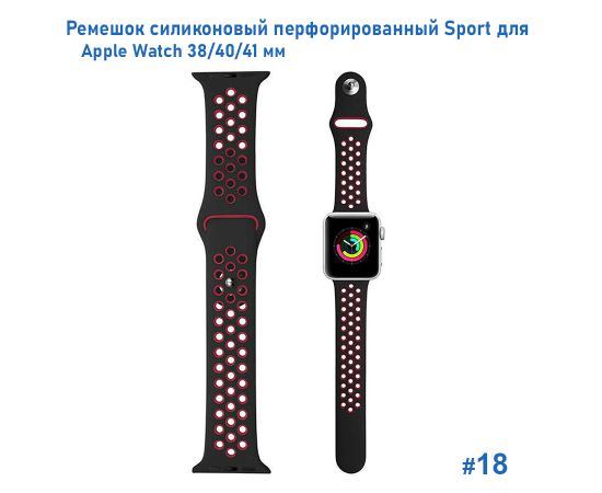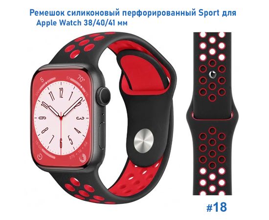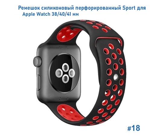 Ремешок силиконовый перфорированный Great Case Sport NK для Apple Watch 38/40/41 мм, 225мм, на кнопке, черный+красный (18)
