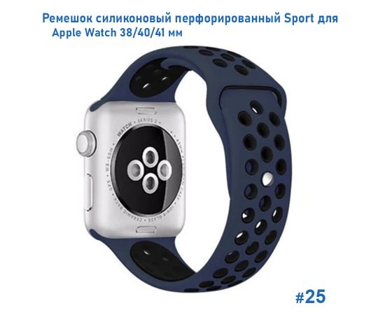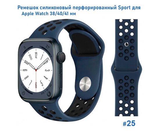 Ремешок силиконовый перфорированный Great Case Sport NK для Apple Watch 38/40/41 мм, 225мм, на кнопке, темно-синий+черный (25)