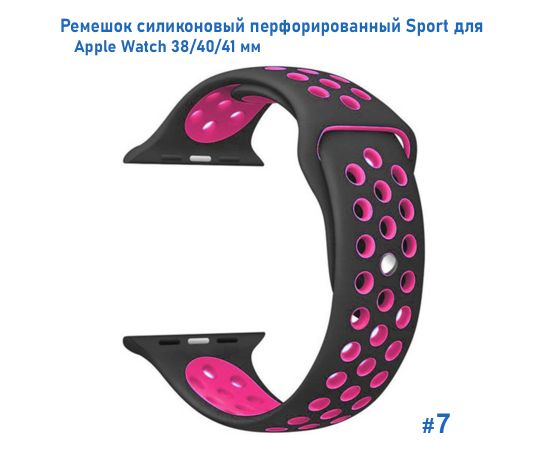 Ремешок силиконовый перфорированный Great Case Sport NK для Apple Watch 38/40/41 мм, 225мм, на кнопке, черный+розовый (7)
