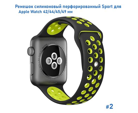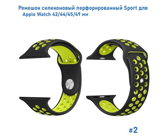 Ремешок силиконовый перфорированный Great Case Sport NK для Apple Watch 42/44/45/49 мм, 235мм, на кнопке, черный+желтый (2)