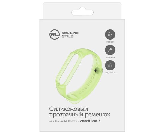 Ремешок силиконовый прозрачный для фитнес-браслета Xiaomi Mi Band 5/ Mi Smart Band 6, салатовый