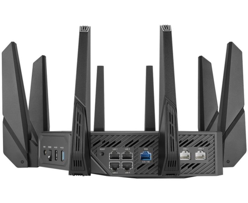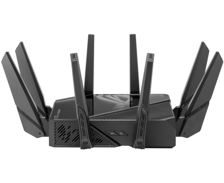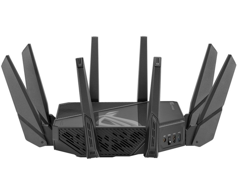 Первый в мире четырехдиапазонный маршрутизатор Wi-Fi 6E: общая скорость передачи данных по сети Wi-Fi достигает 16000 Мбит/с. Поддержка частотного диапазона 6 ГГц: выше скорость, ниже латентность, менее загруженный эфир. Технология ASUS RangeBoost Plus: расширенный охват беспроводной сети.