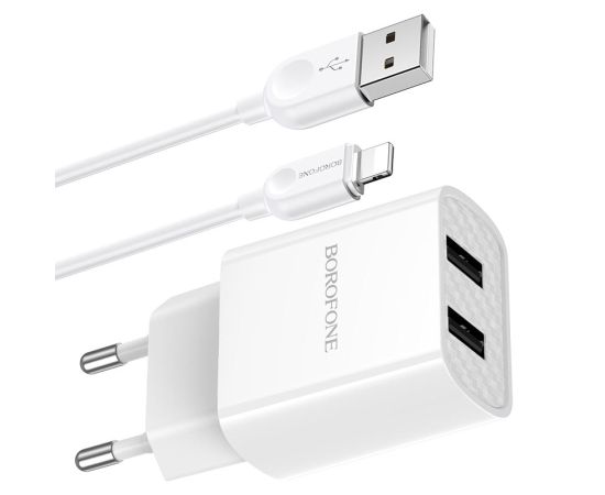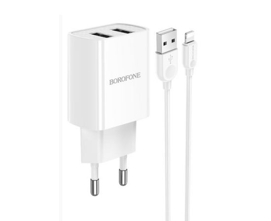 Сетевое зарядное устройство 2USB 2.1A в комплекте с кабелем Apple 8-pin Borofone BA53A 1м (White)